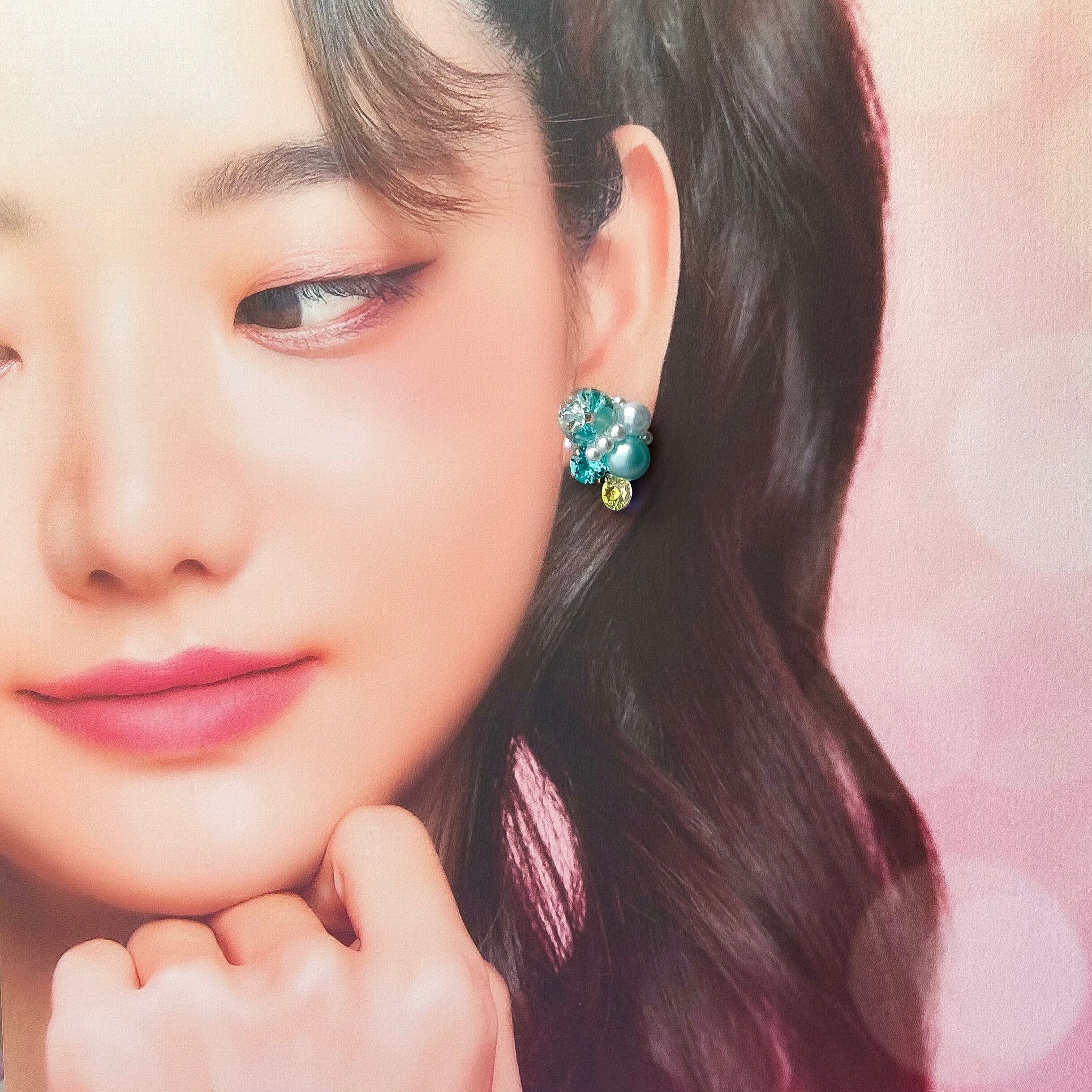 クリスタルドームビジューの耳飾り(ターコイズ)