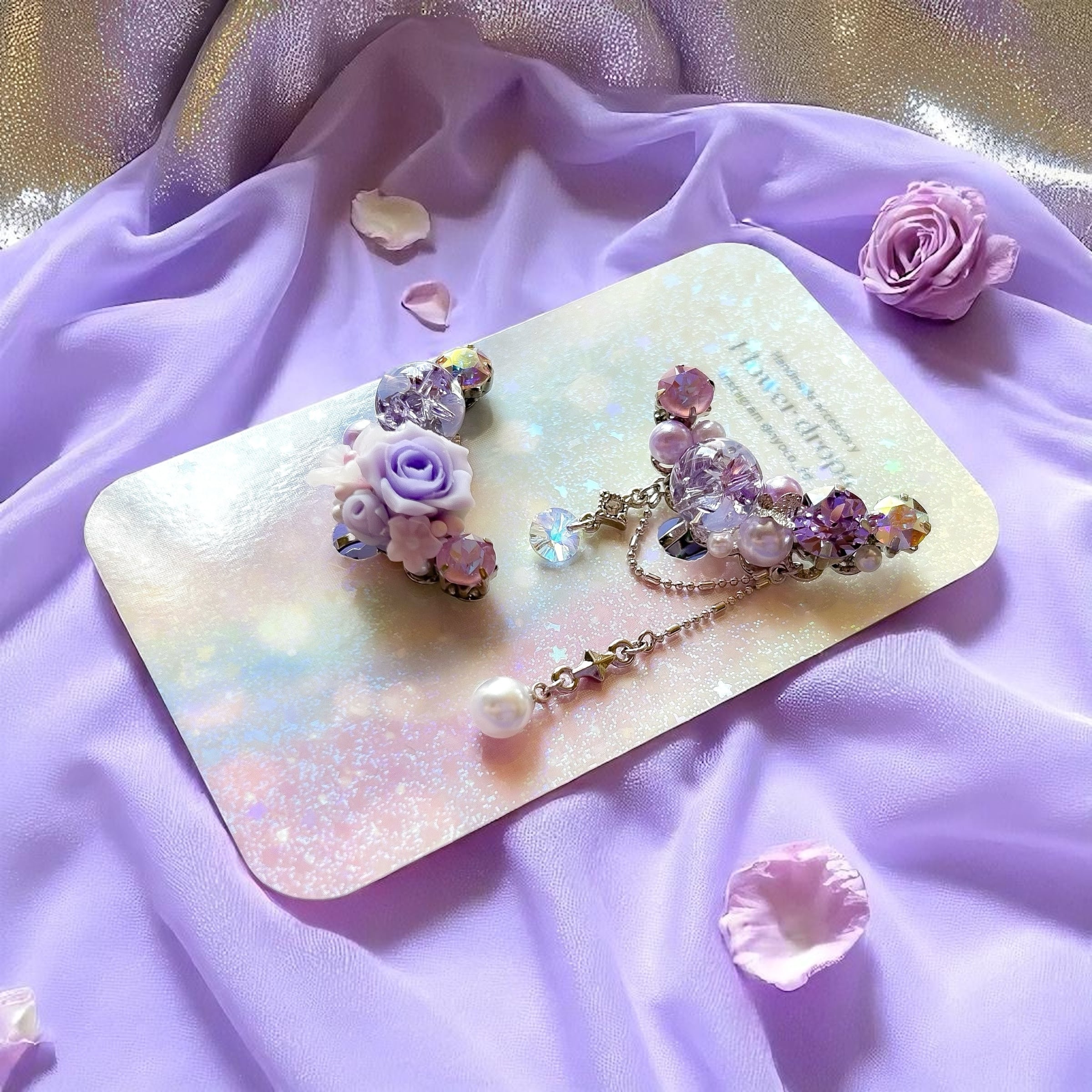 クリスタルドームビジューとローズのイヤーカフ(パープル)