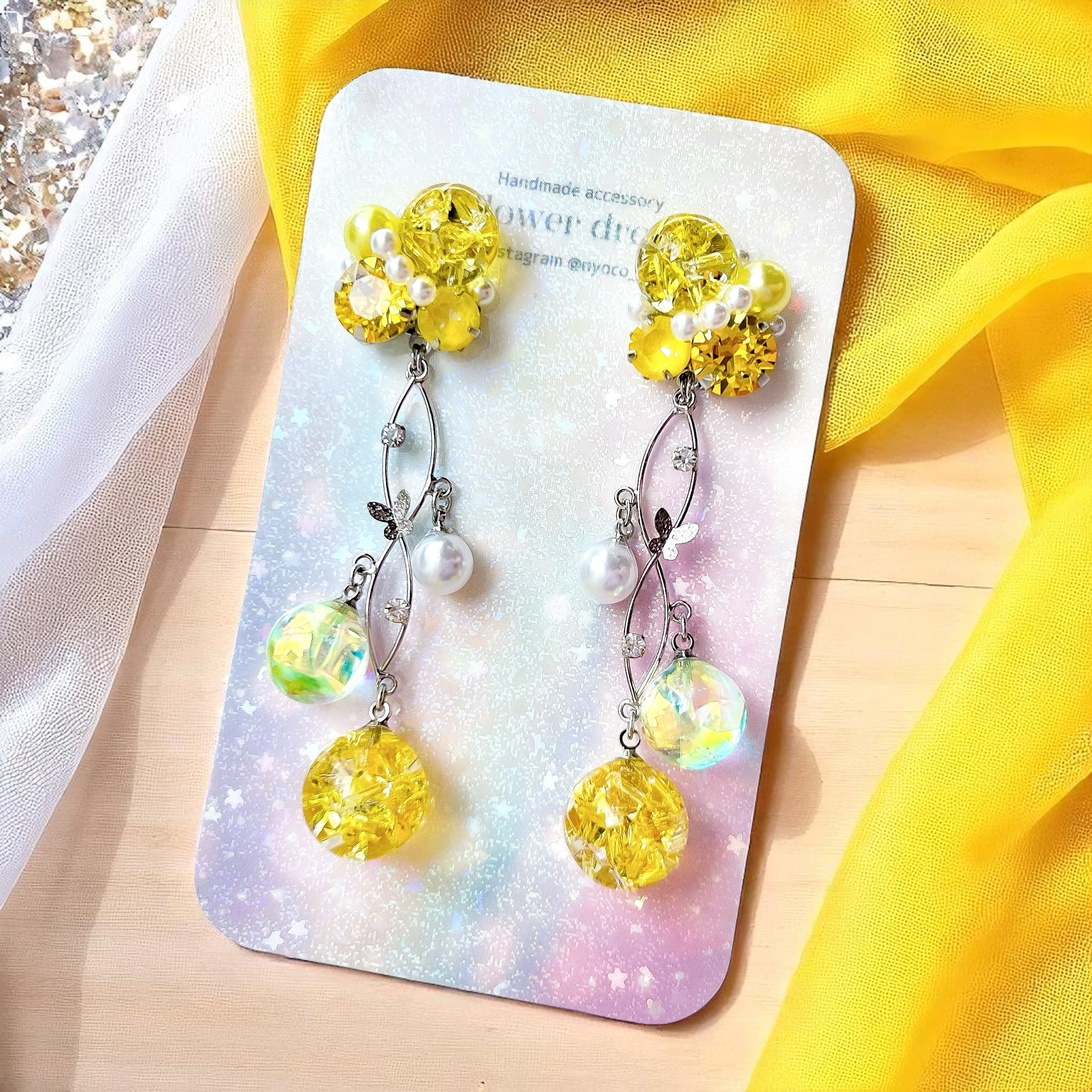 クリスタルドームビジューの耳飾り(イエロー)