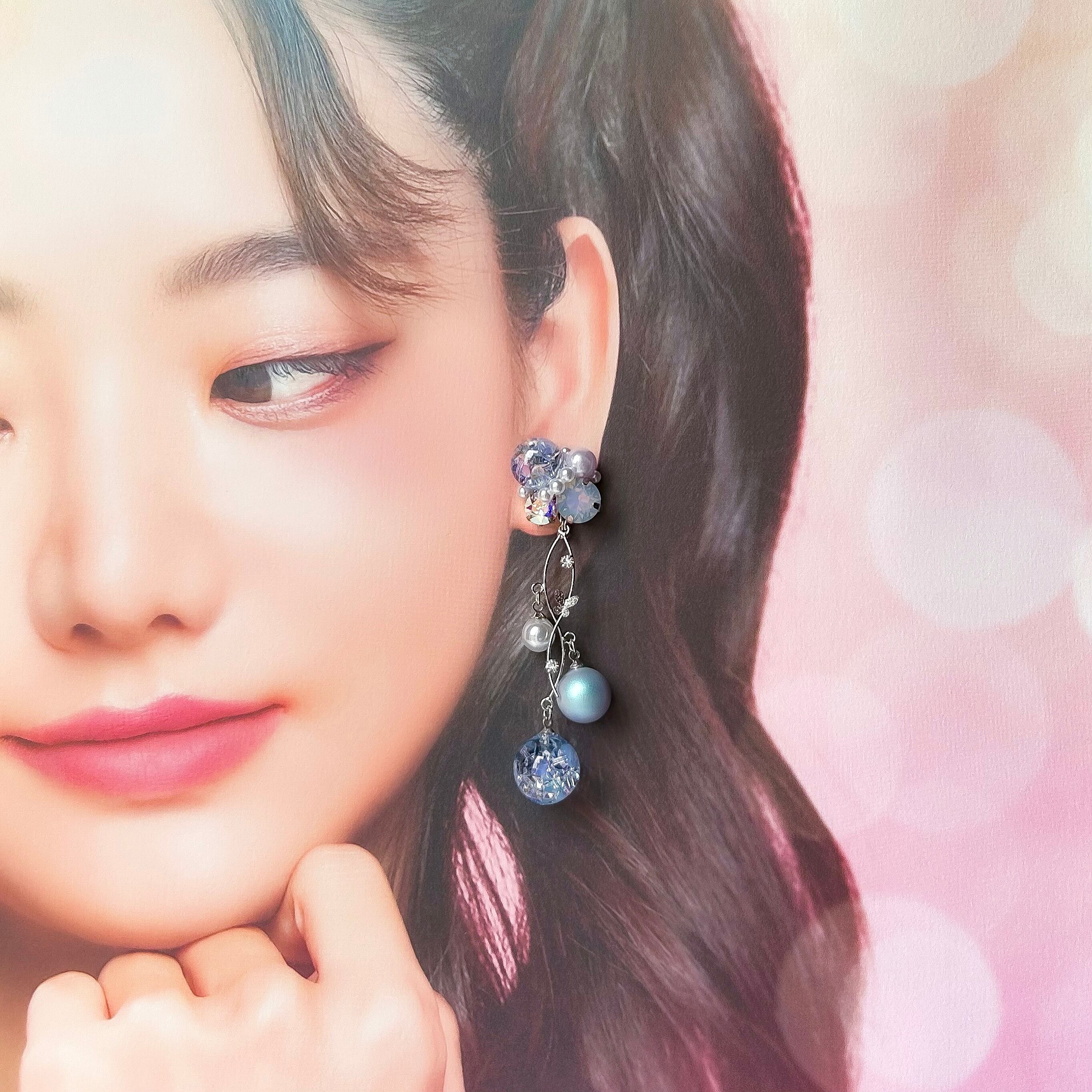 クリスタルドームビジューの耳飾り(水色・パープル)