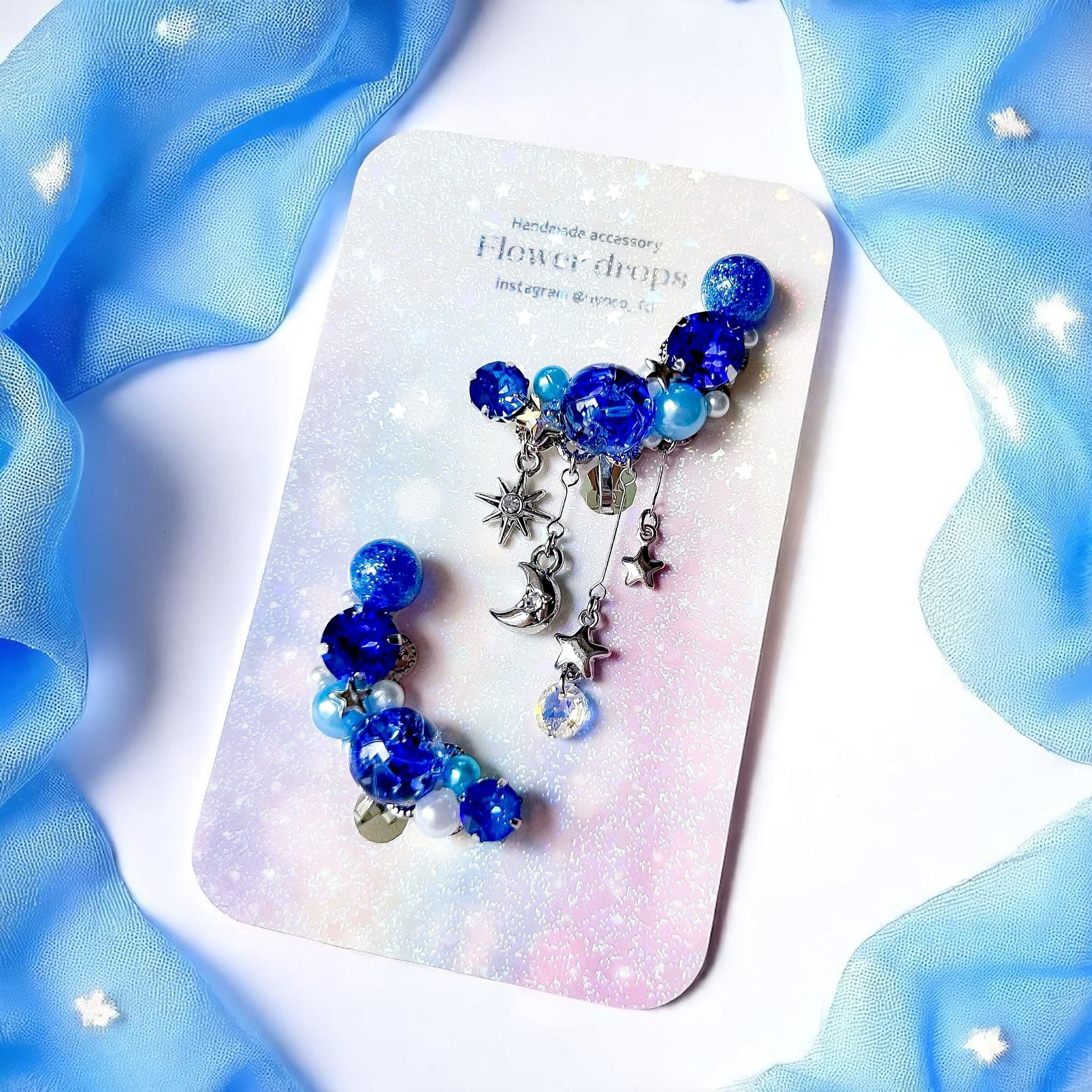 夜空のように幻想的なデザインのイヤーカフ2点セットです。