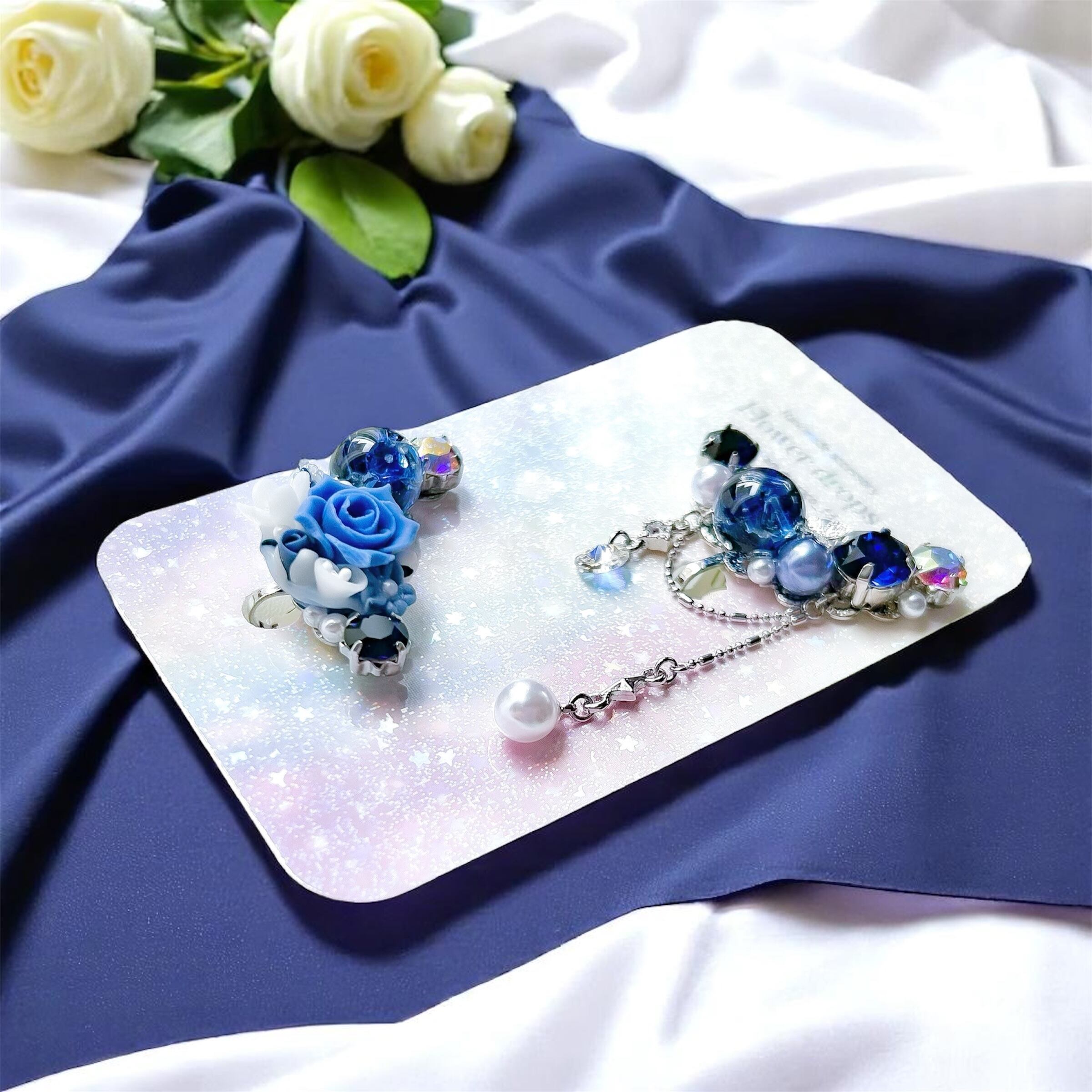 クレイフラワーとクリスタルドームビジューのイヤーカフ(ローズ/ネイビー)