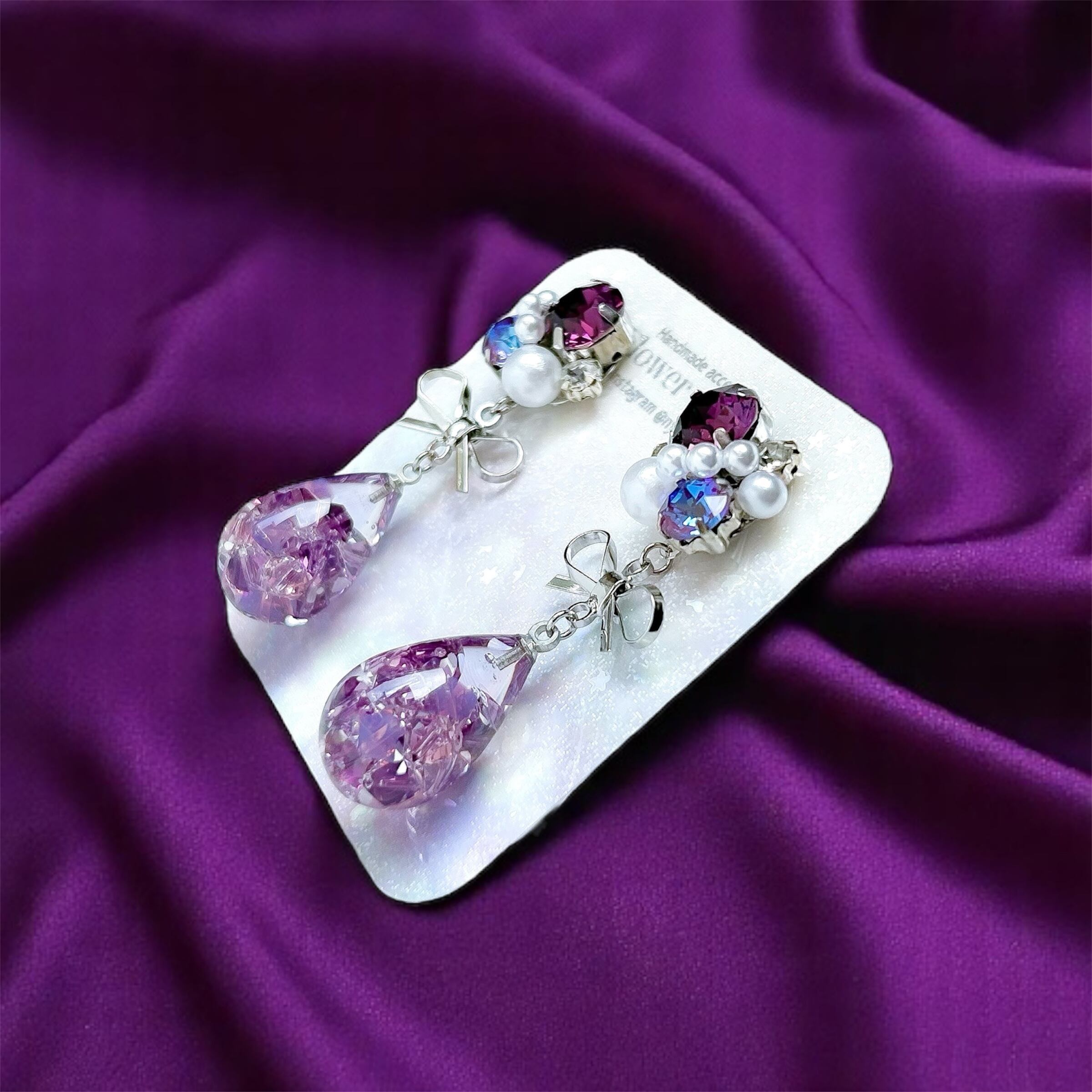 煌めくしずく♥ビジューの耳飾り(アメジスト)