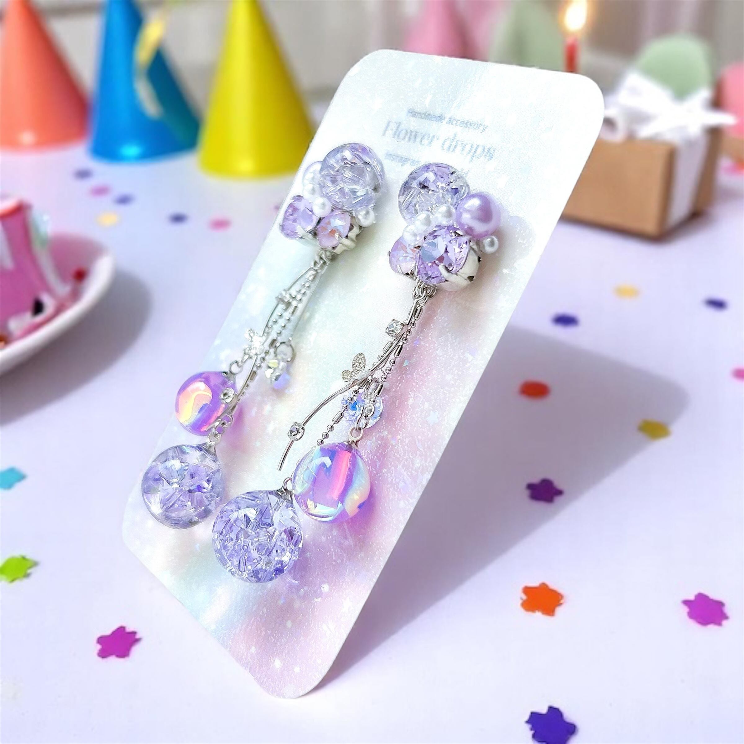 クリスタルドームビジュー♥バタフライチャームの耳飾り(パープル)
