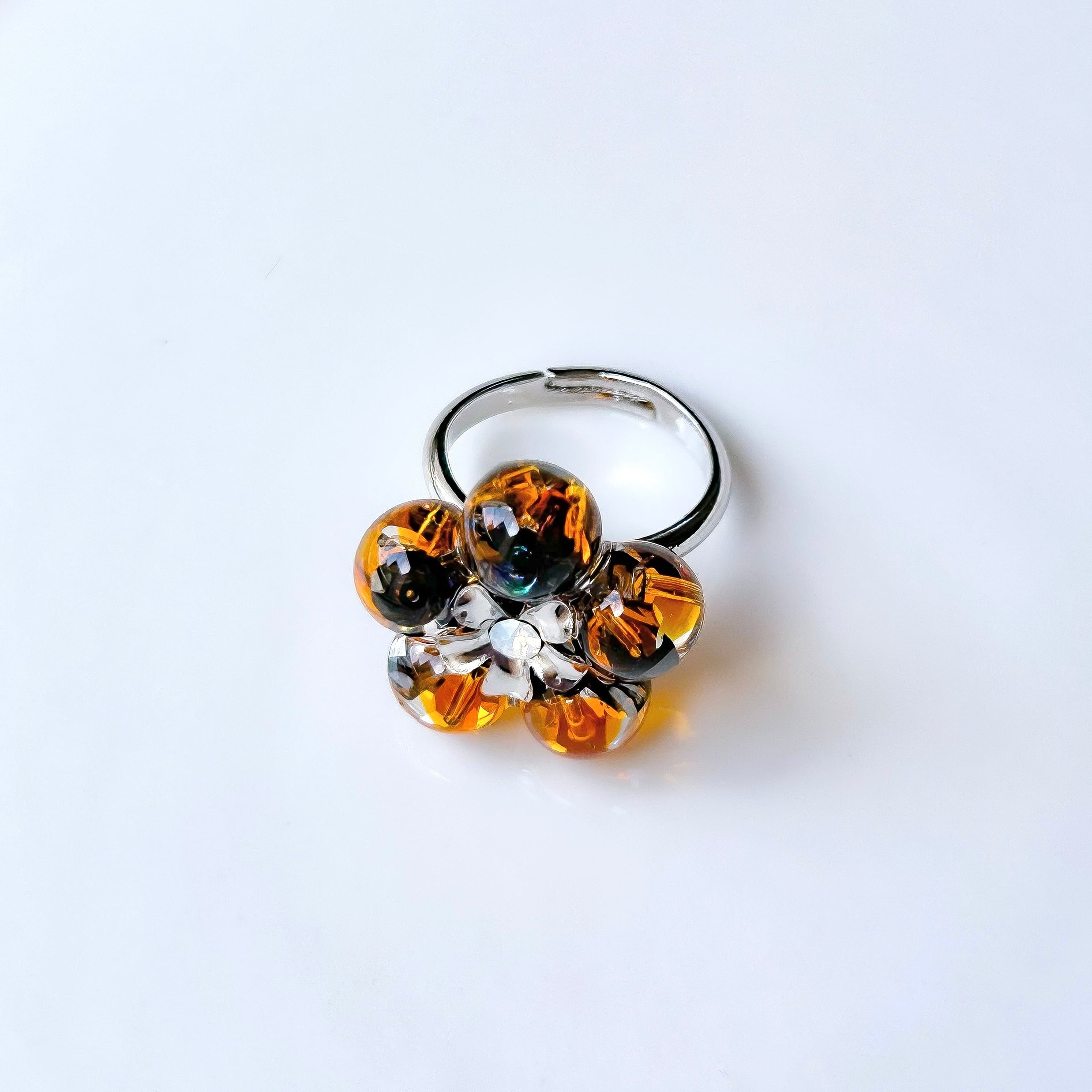 クリスタルドームフラワーの指輪(オレンジ・黒)