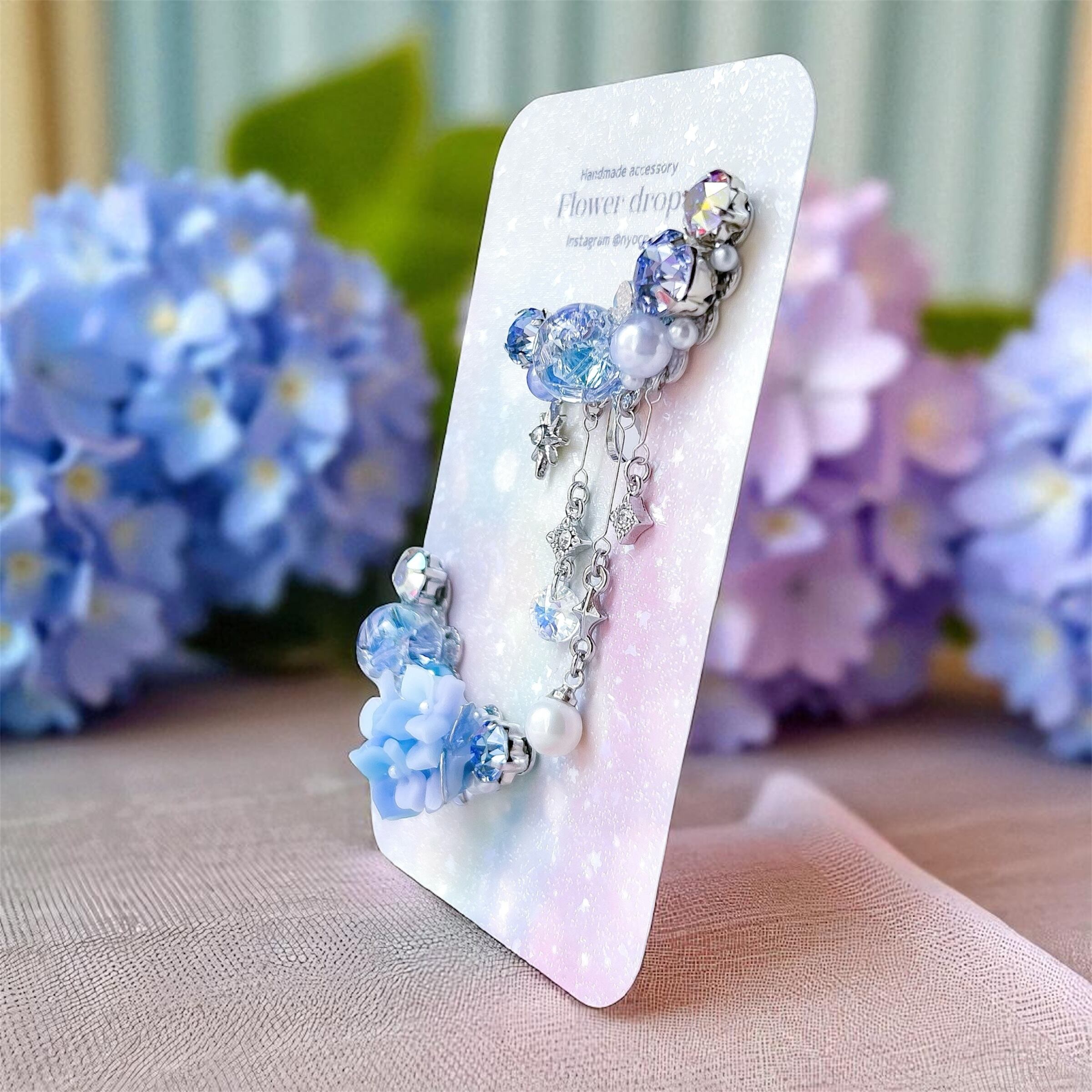 クリスタルドームビジュー♥クレイフラワーのイヤーカフ(紫陽花/水色・青紫)