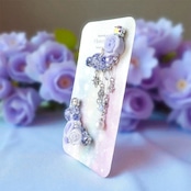 クリスタルドームビジュー♥クレイフラワーのイヤーカフ(ローズ/パープル)