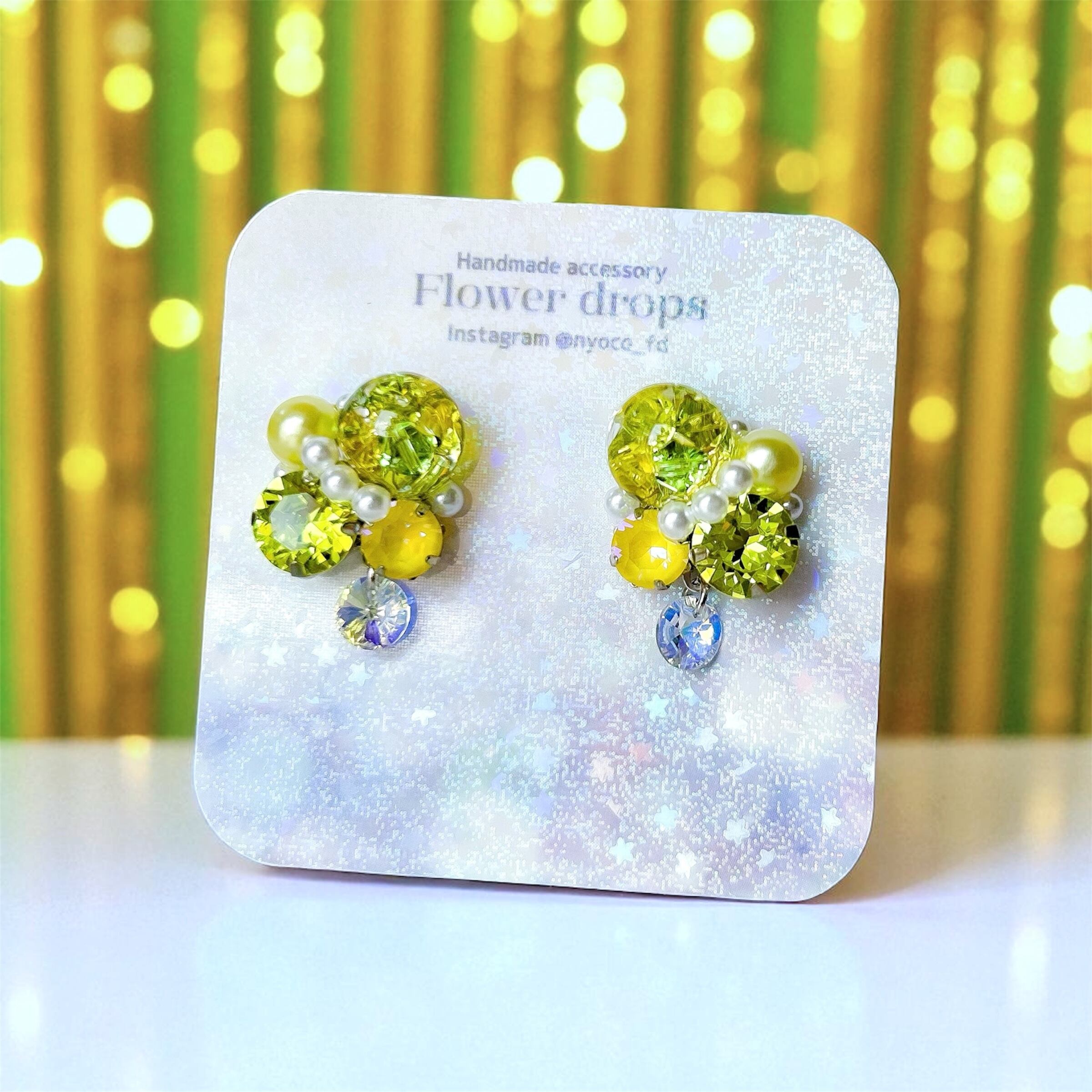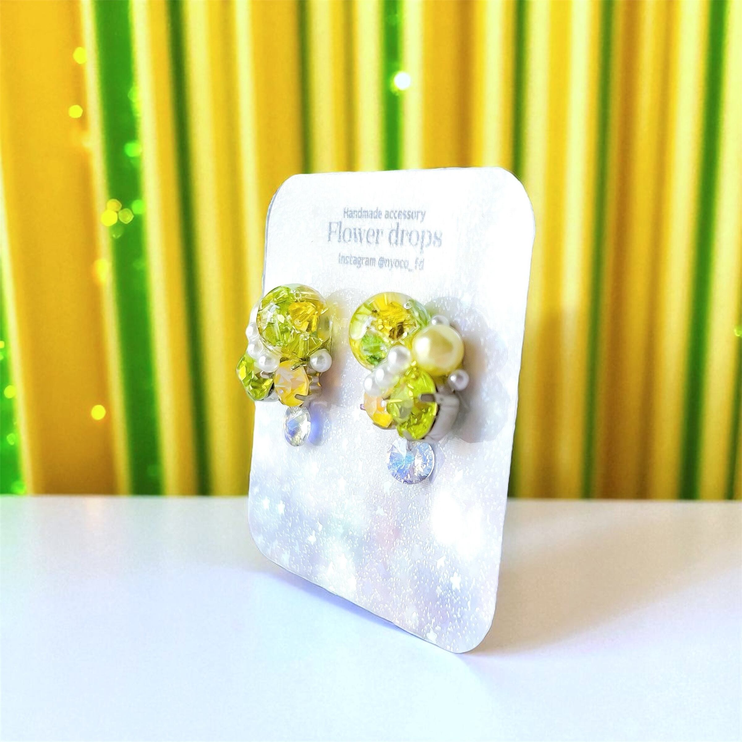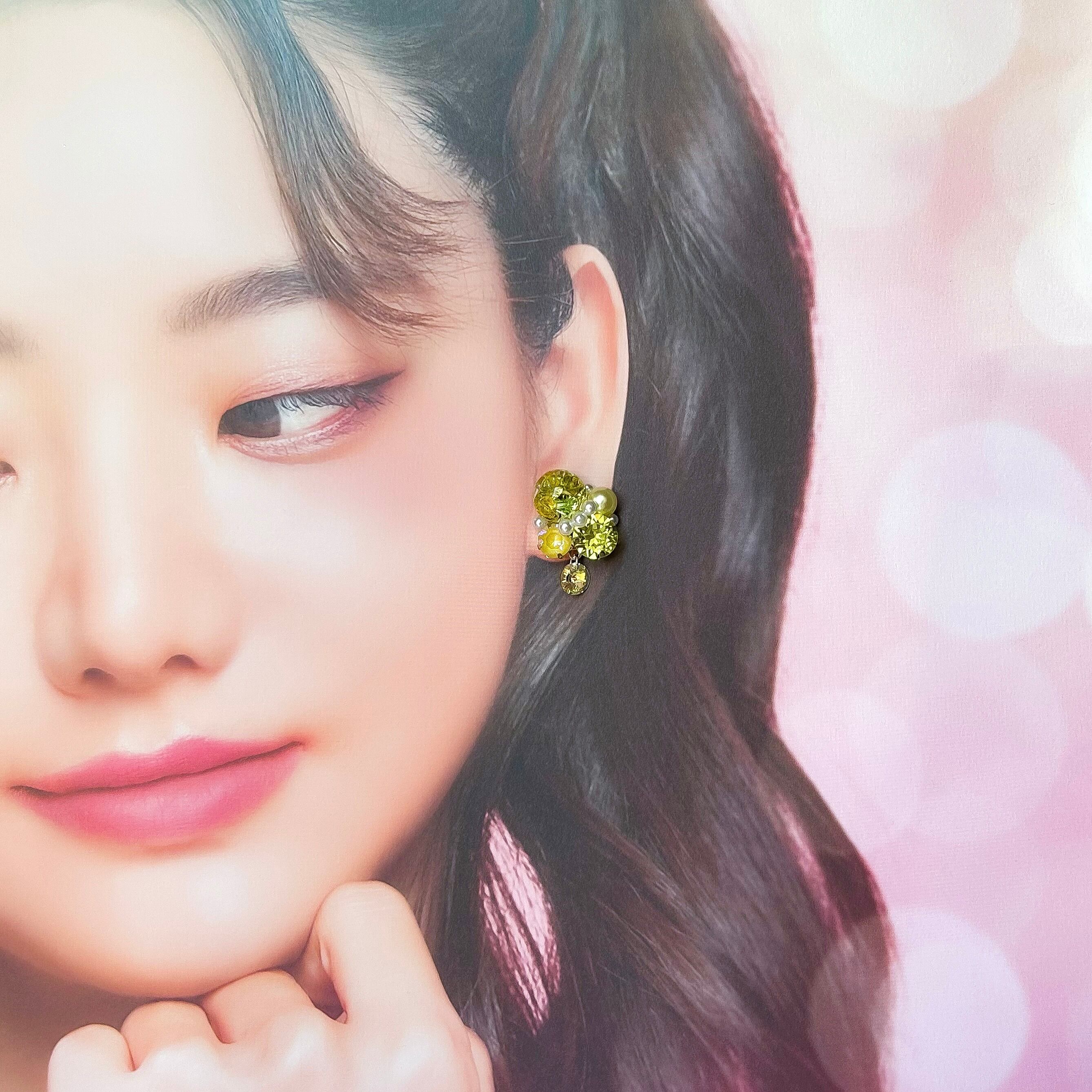 クリスタルドームビジューの耳飾り(黄緑・イエロー)