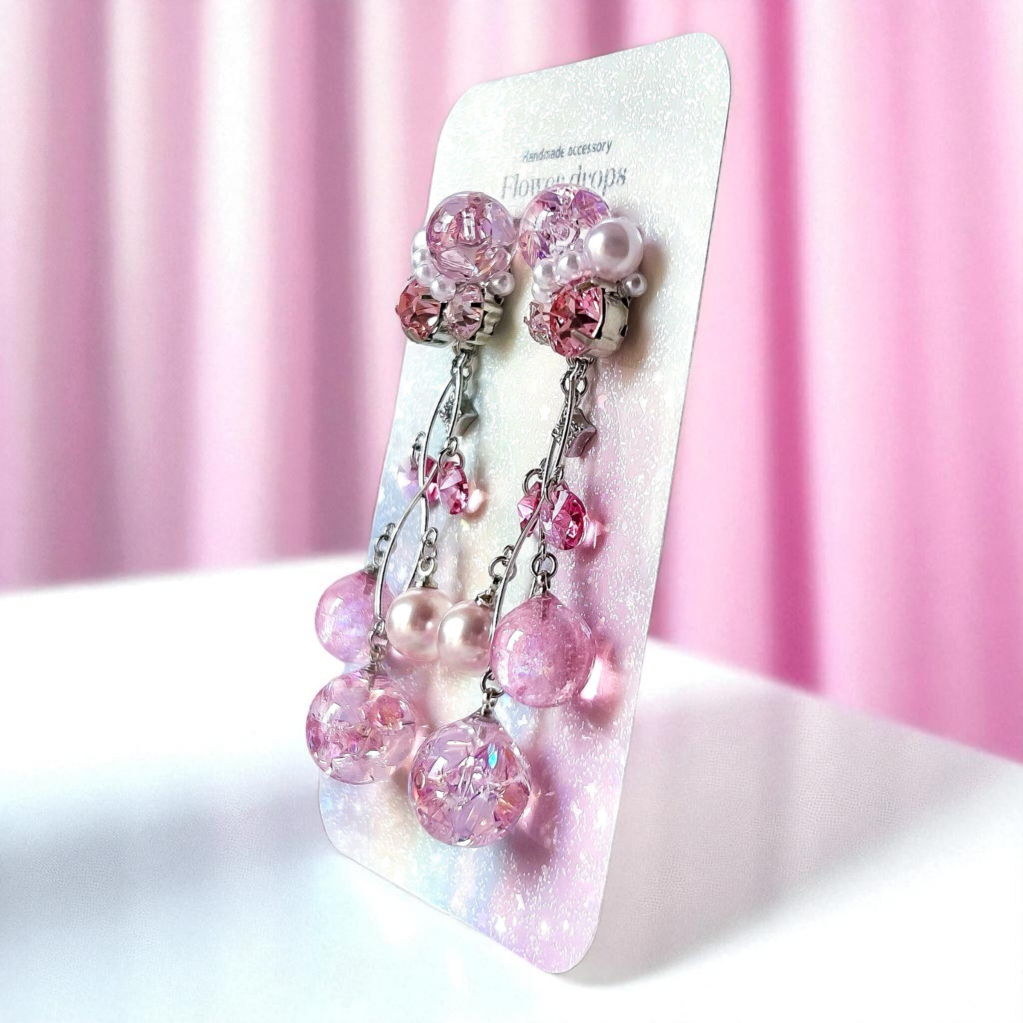 クリスタルドームビジュー♥シャンデリアの耳飾り(ピンク)