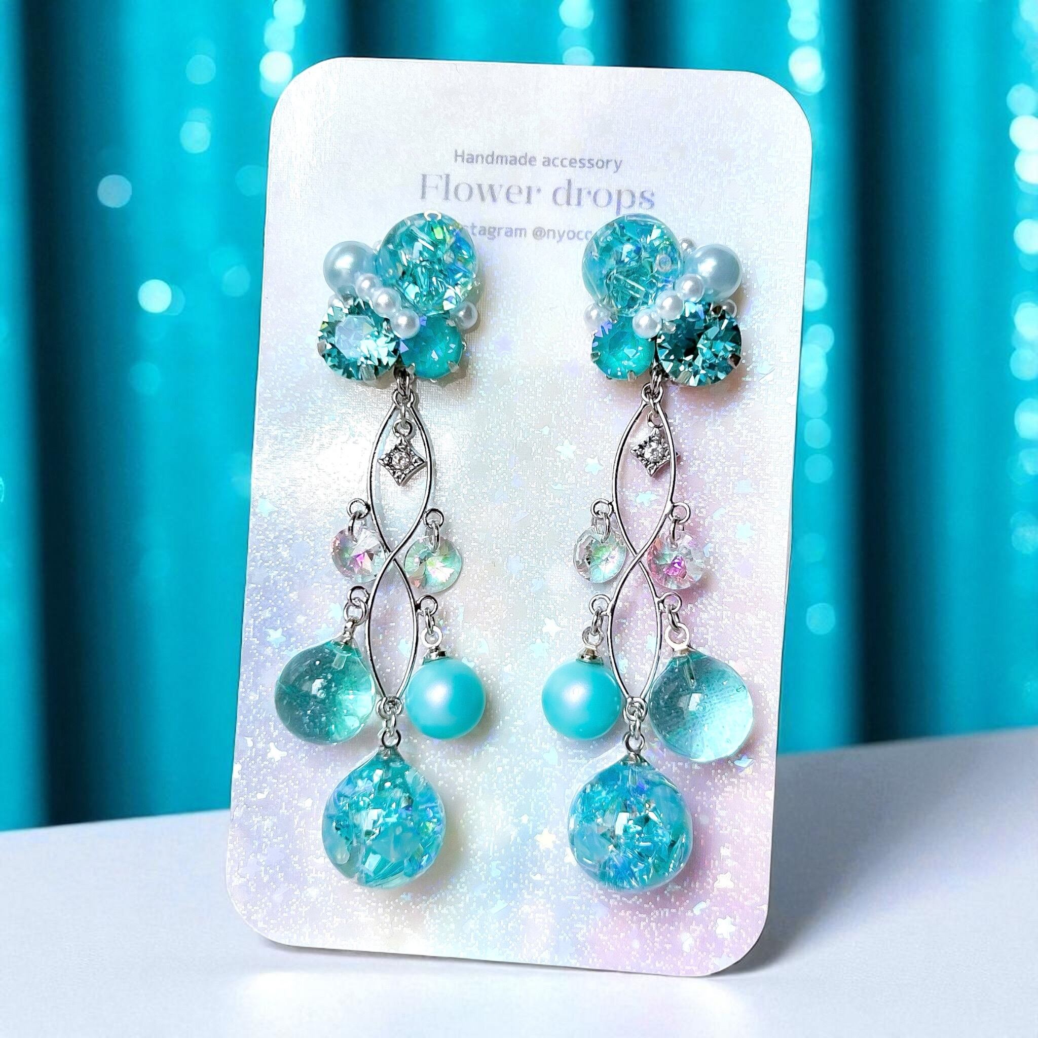 クリスタルドームビジュー♥シャンデリアの耳飾り(ターコイズブルー)