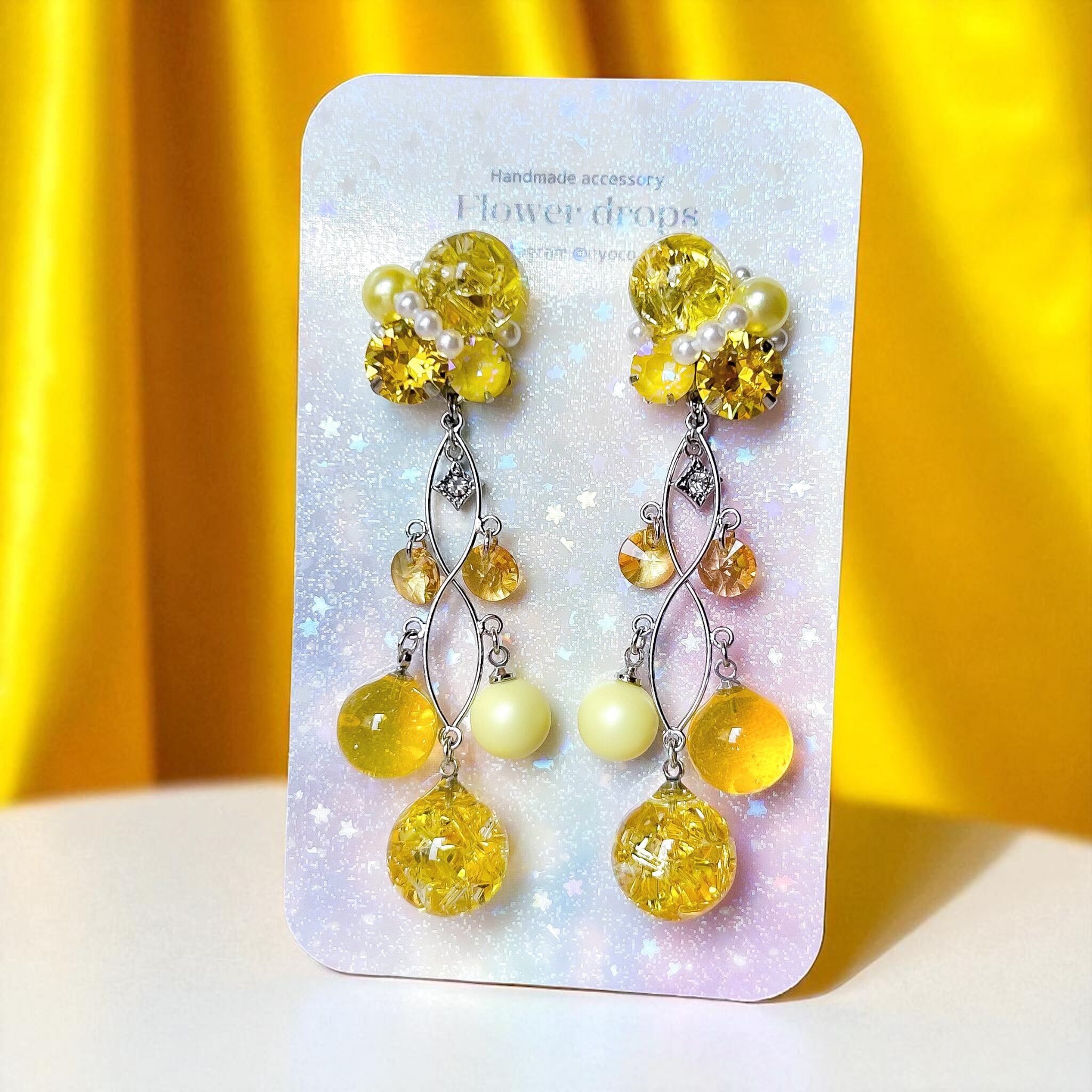 クリスタルドームビジュー♥シャンデリアの耳飾り(イエロー)