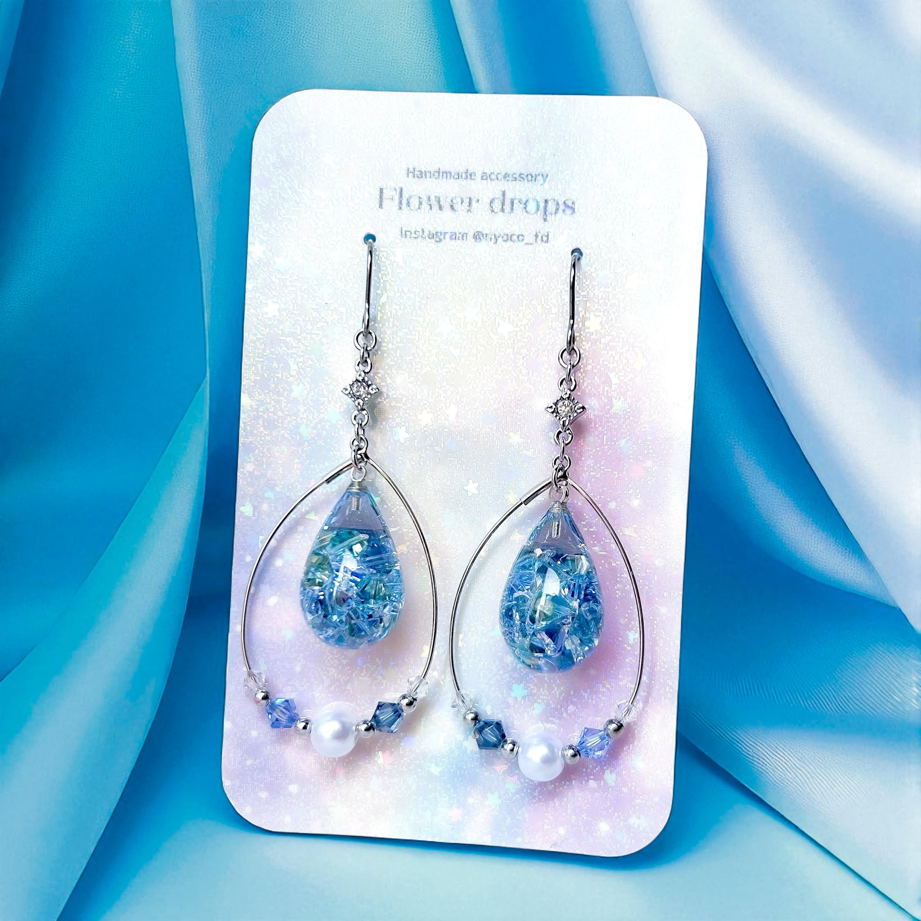 煌めくしずく♥小さなしずくフープの耳飾り(デニムブルー)
