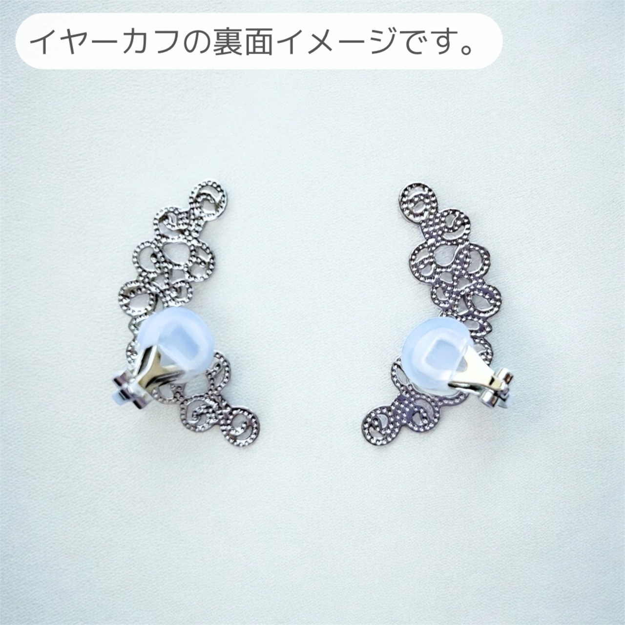 華やかなビジューデザインが魅力のハンドメイドイヤーカフ2点セットです。樹脂粘土パーツやスワロフスキー・クリスタルのダイヤカットストーン、パール、オリジナルのレジンパーツを贅沢に組み合わせ、耳元をエレガントに彩ります。