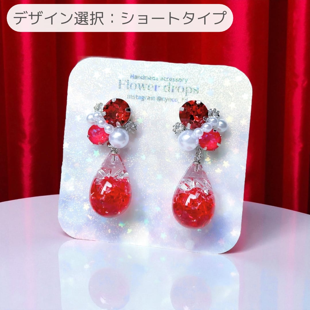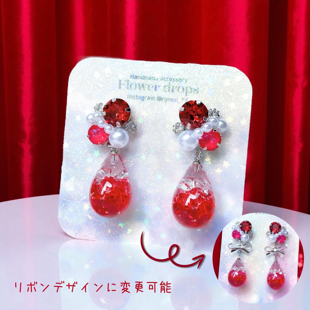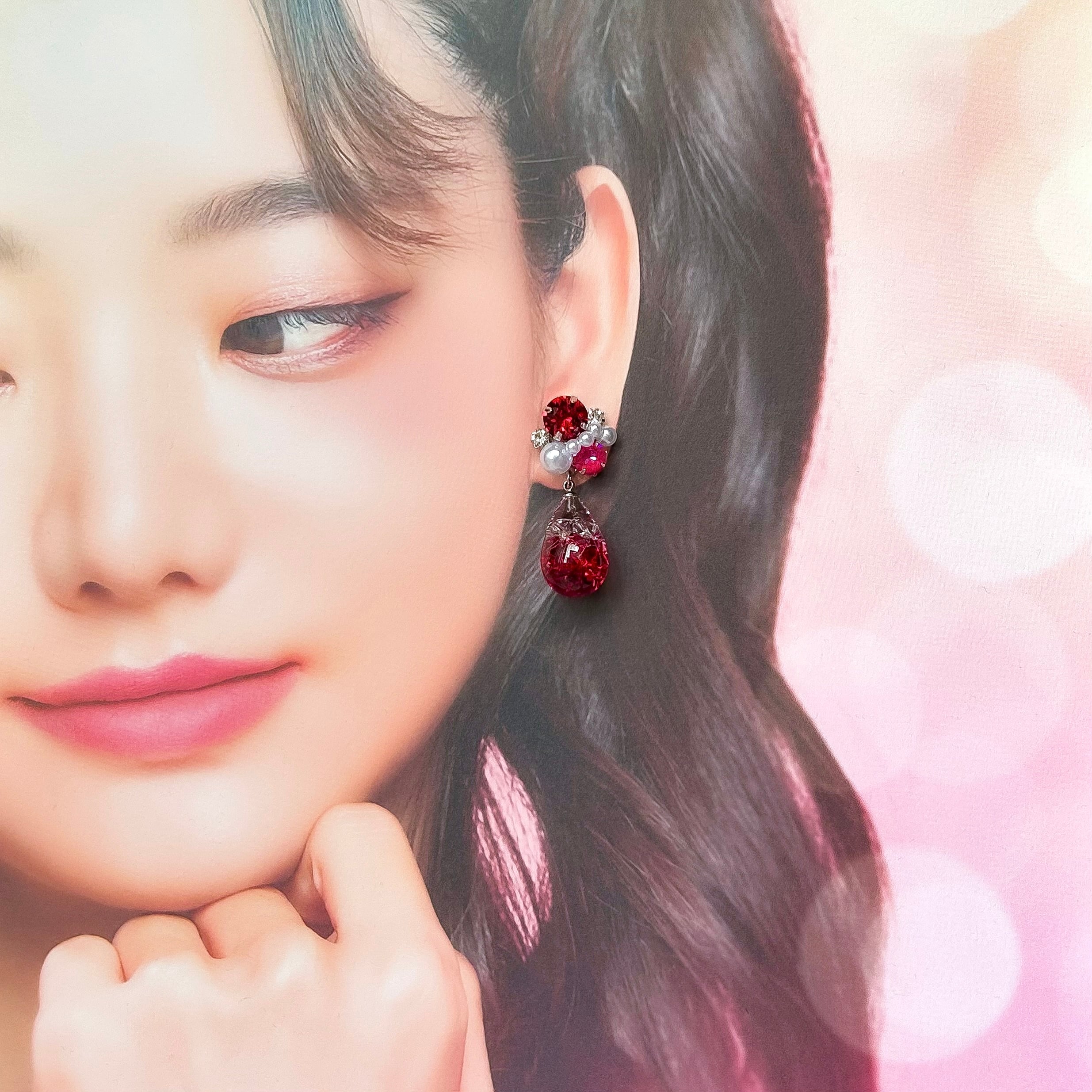 煌めくしずく♥ビジューの耳飾り(レッド)