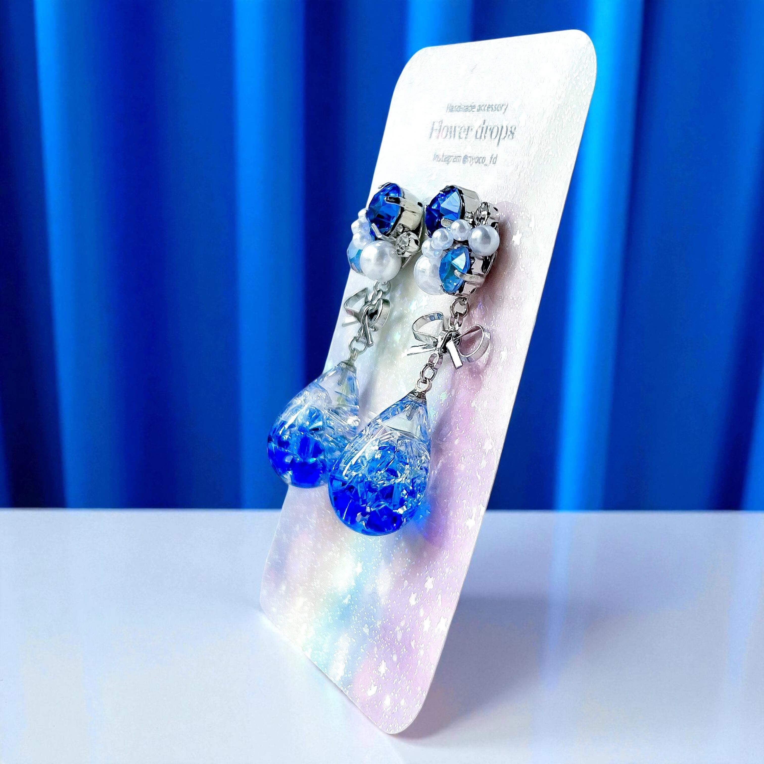 煌めくしずく♥ビジューの耳飾り(ブルー)
