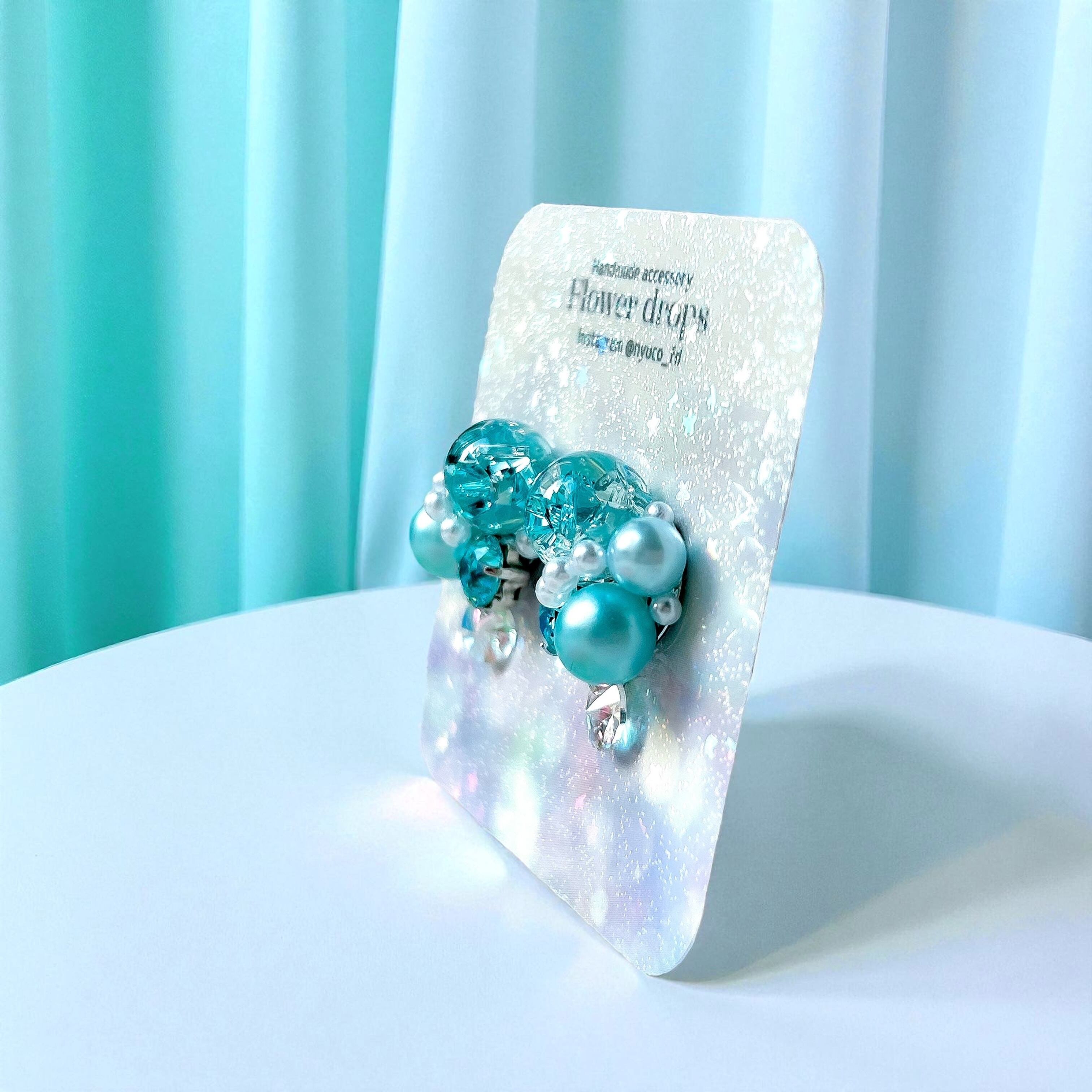 クリスタルドームビジューの耳飾り(ターコイズ)