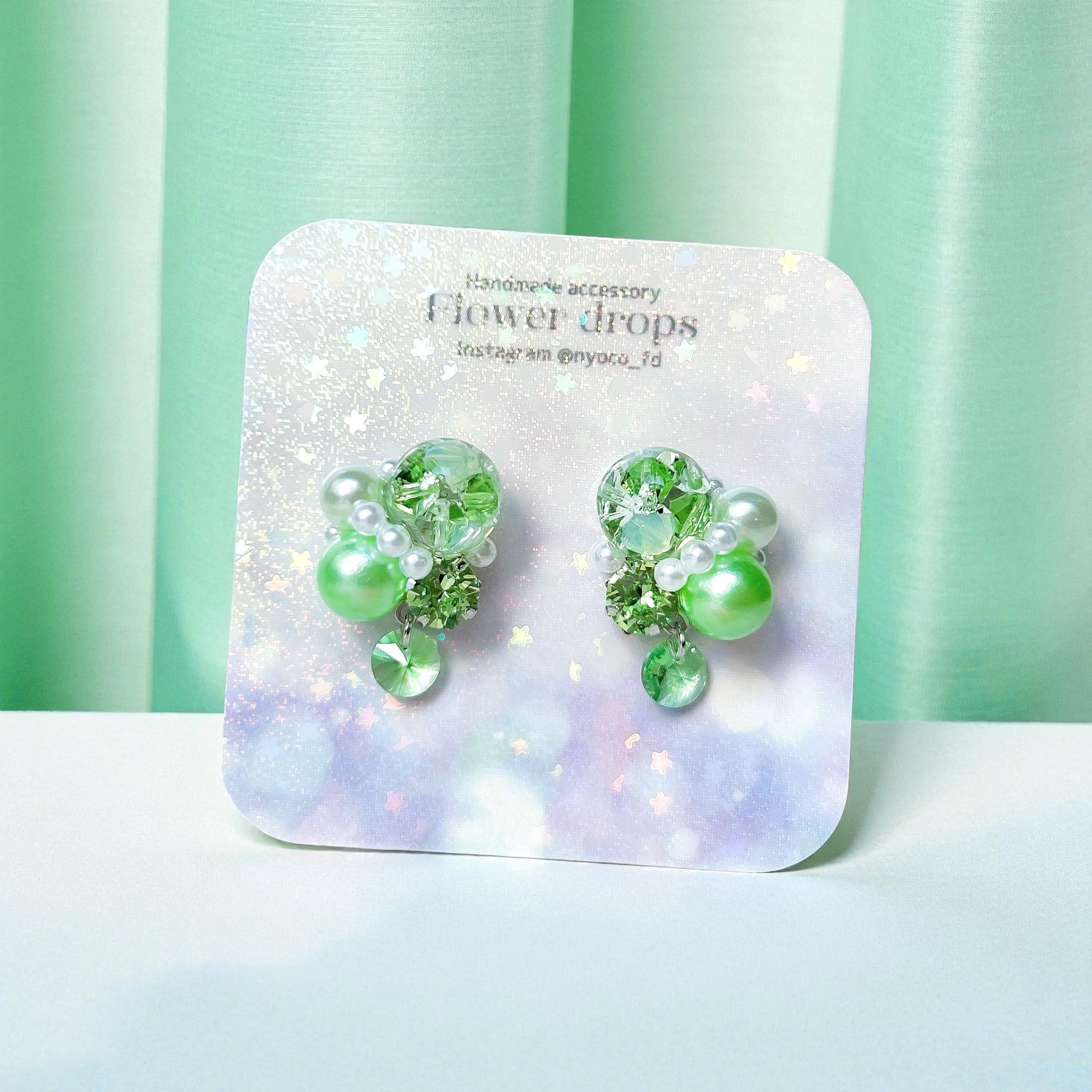 繊細なビジューとパールが華やかさを添え、耳元を上品に彩ります。