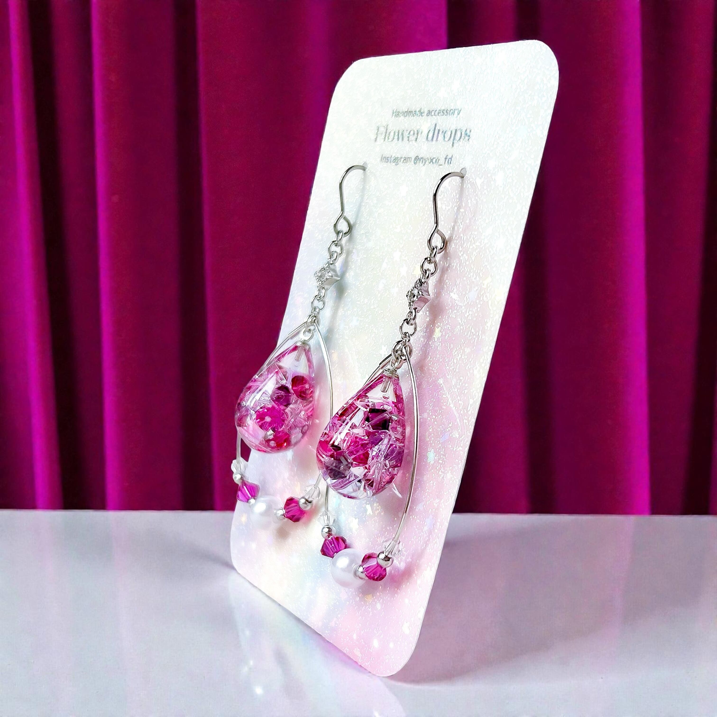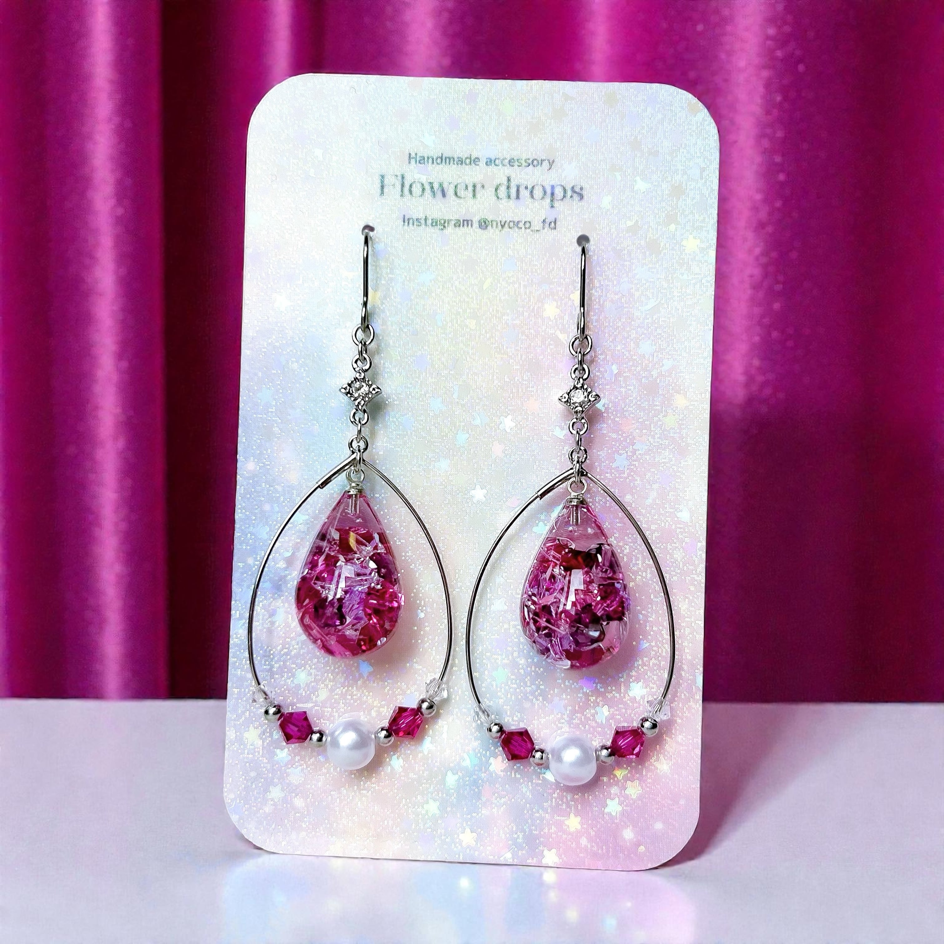 煌めくしずく♥小さなしずくフープの耳飾り(マゼンタ)