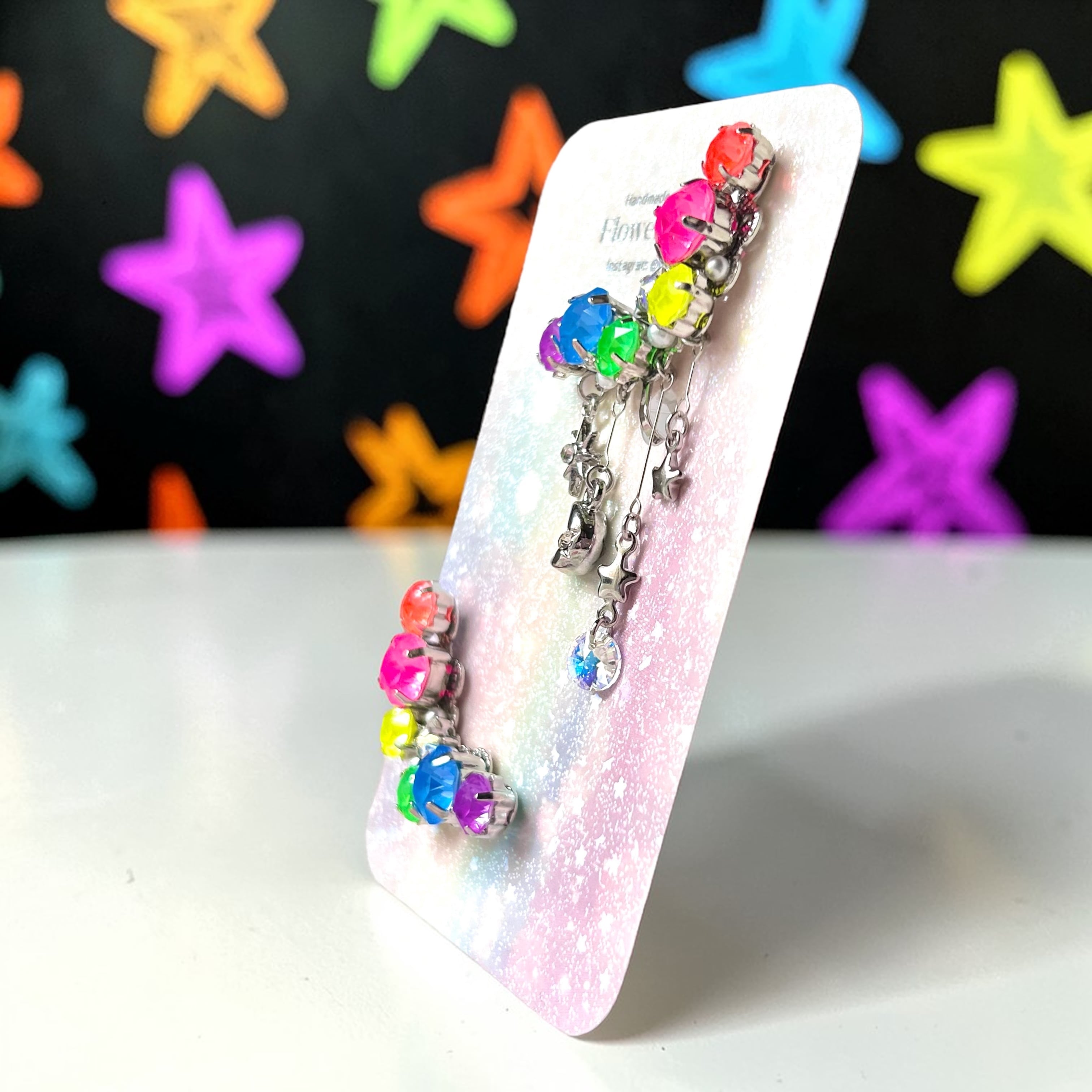 貴和クリスタルのエレクトリックカラーを贅沢に使用し、ポップで遊び心のあるデザインに仕上げました。ブラックライトやUVライトに反応して発光するチャトンが、特別な輝きを演出します。