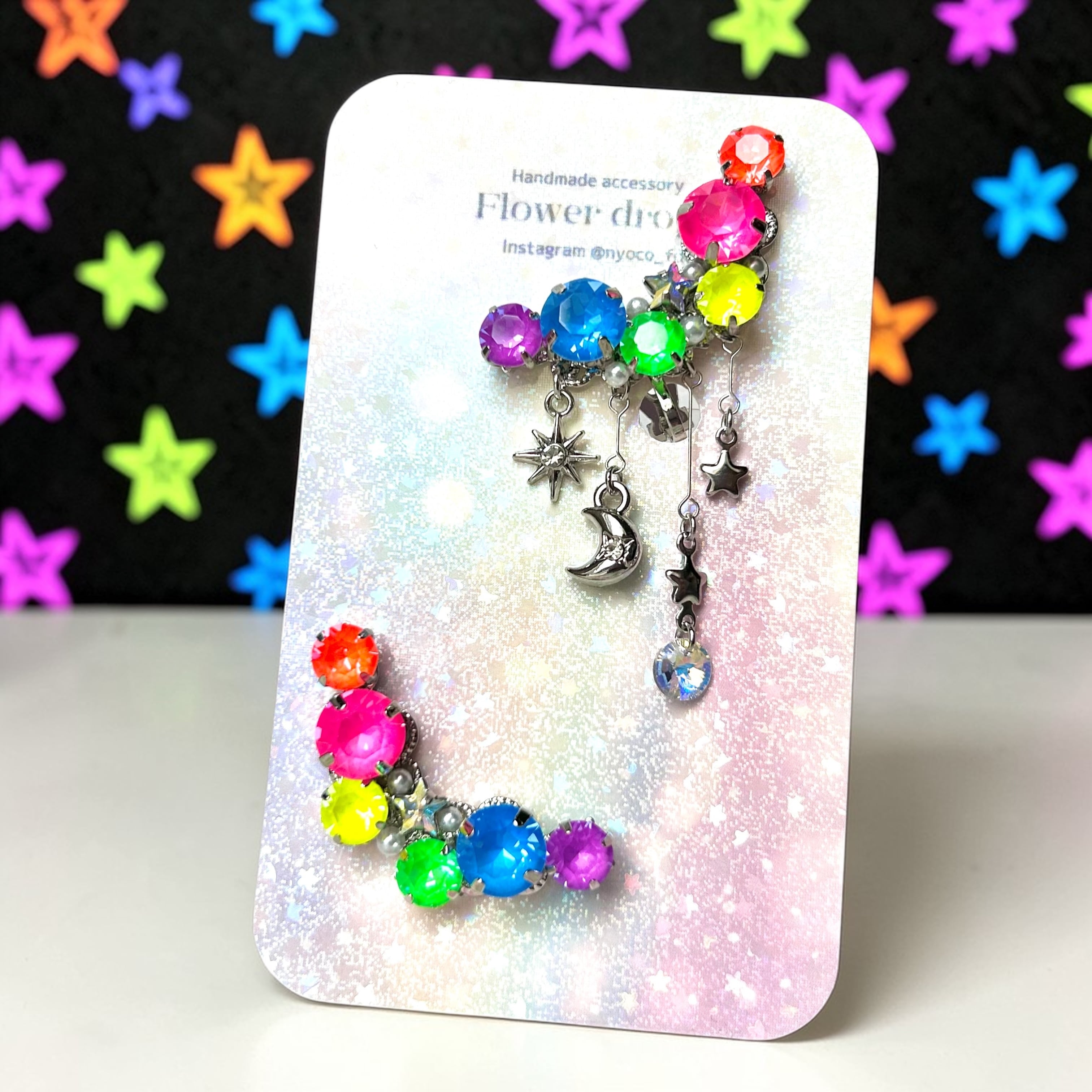 異なるサイズ感の2点セットなので、気分やコーデに合わせて自由にアレンジできます。耳元に個性をプラスする、推し活やイベントにもぴったりのアクセサリーです。