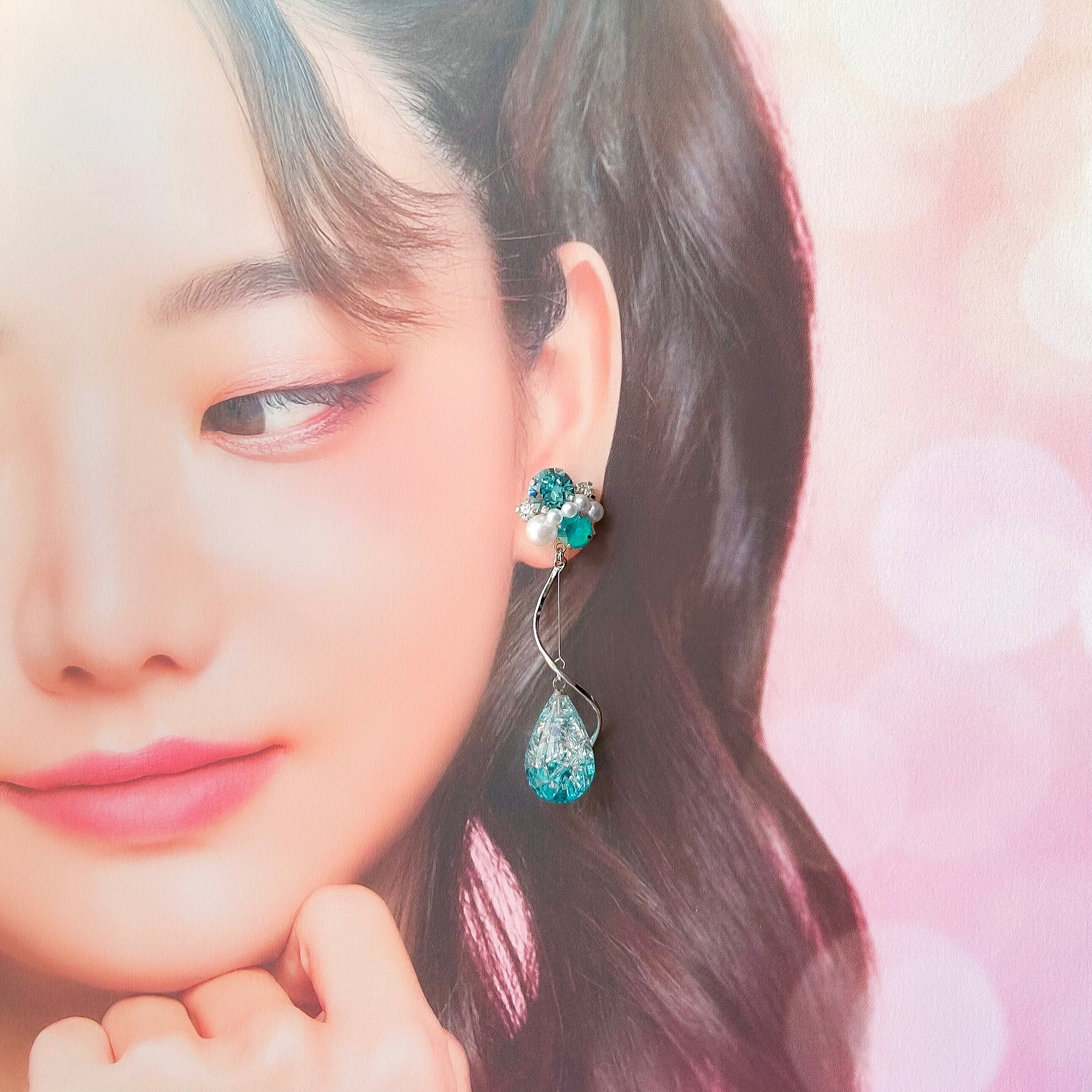 煌めくしずく♥ビジューの耳飾り(ターコイズ)